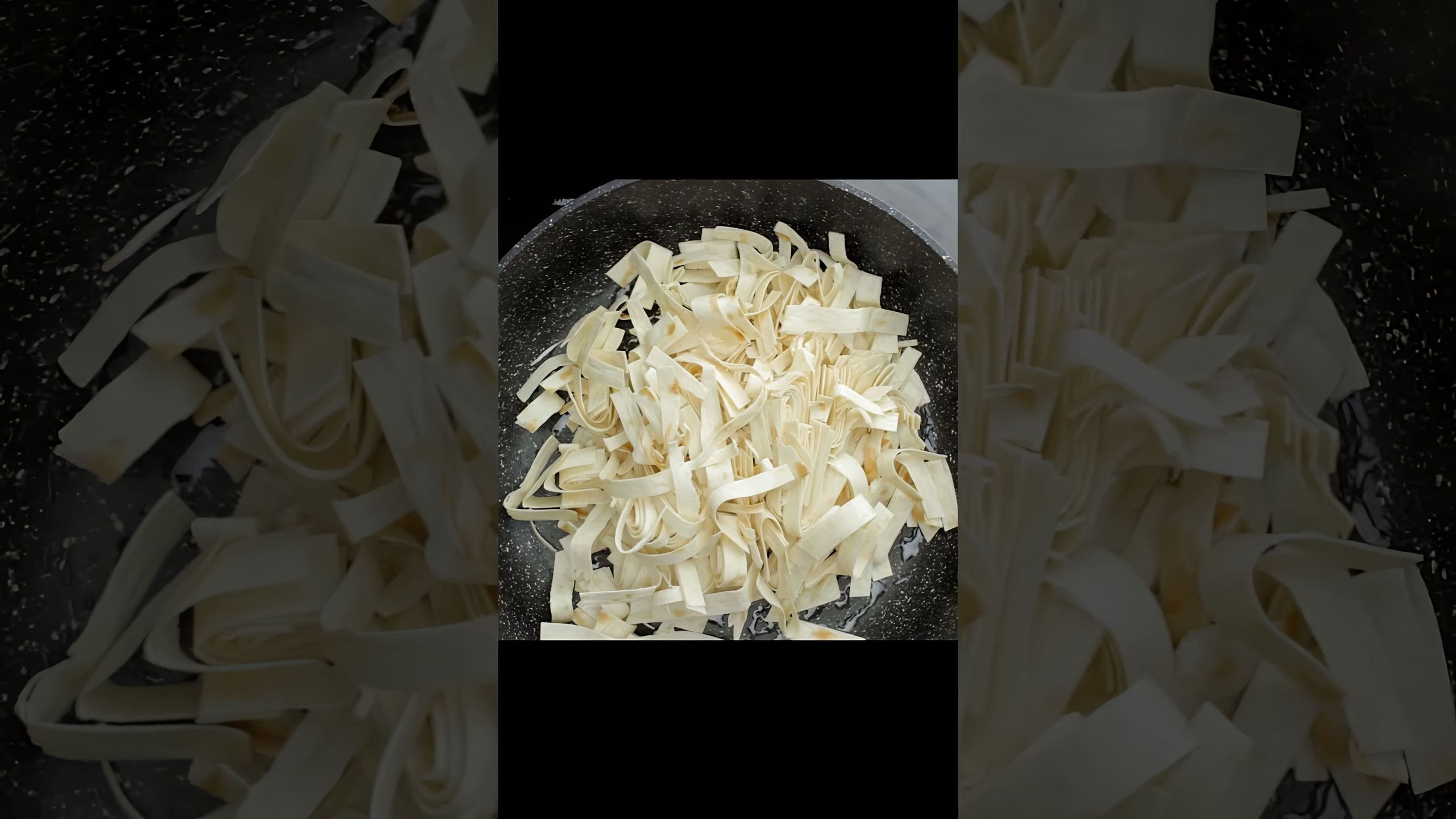 Лаваш нарезанный соломкой на сковороде