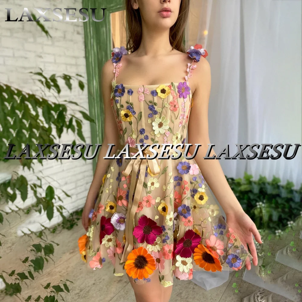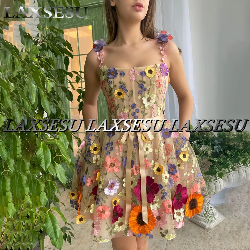 "Laxsesu Super Mini Floral Prom Dress 3D Flowes Straps Colorful Appliques Evening Gown 2022 Plus Size Celebrity Party Dress" * Buy Now Just For 109$
