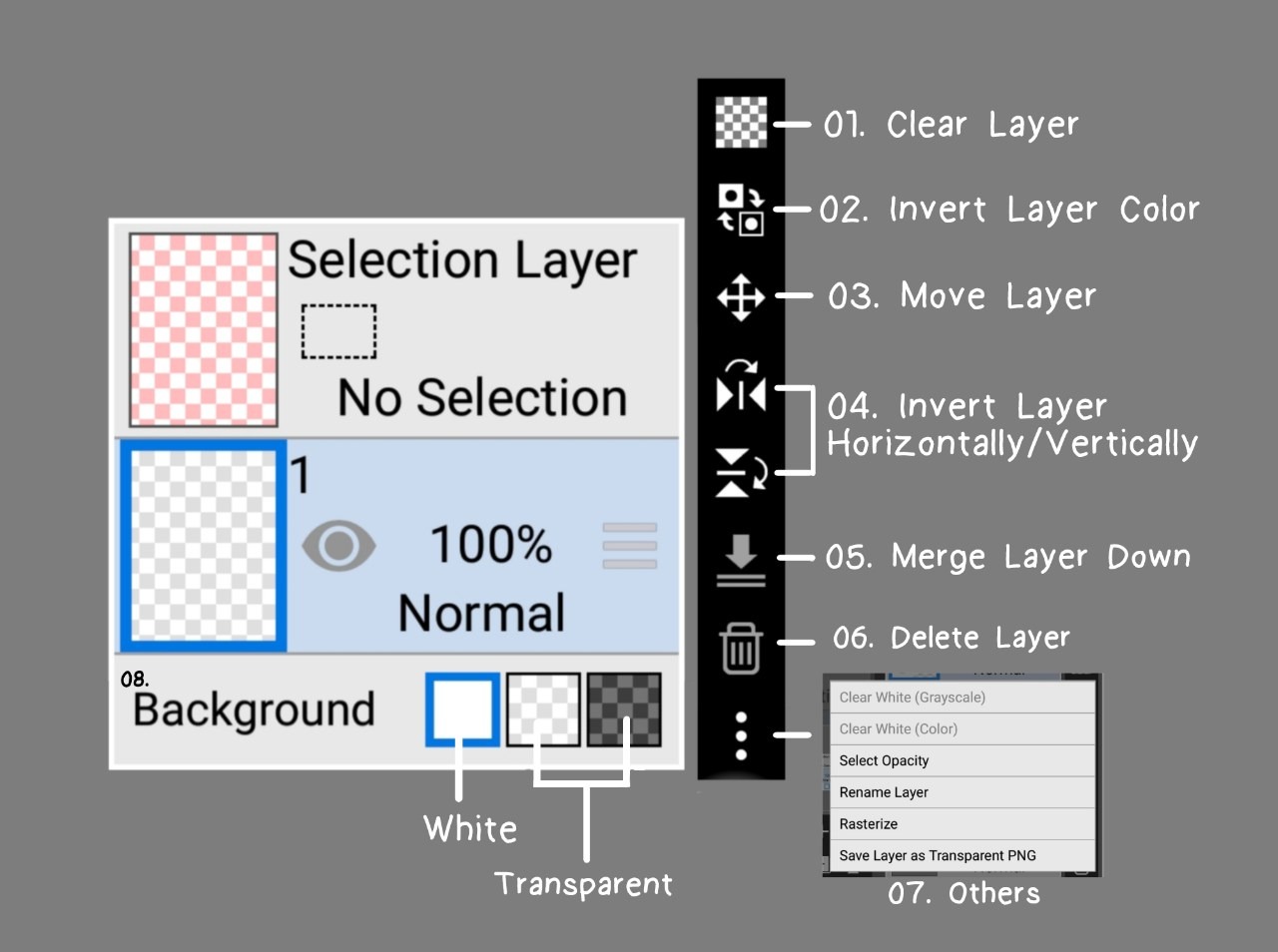 ▸ Save layer as transparent PNG : Untuk nyimpen layer yang aktif dalam bentuk PNG.
