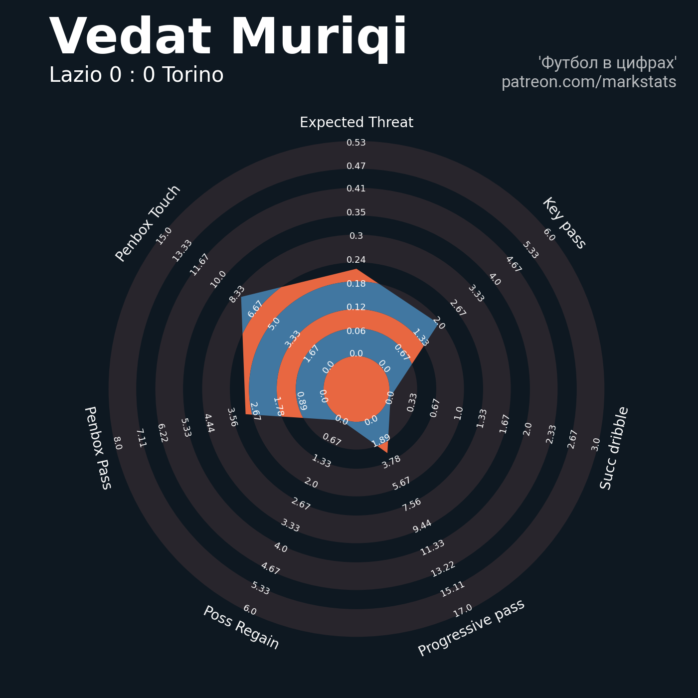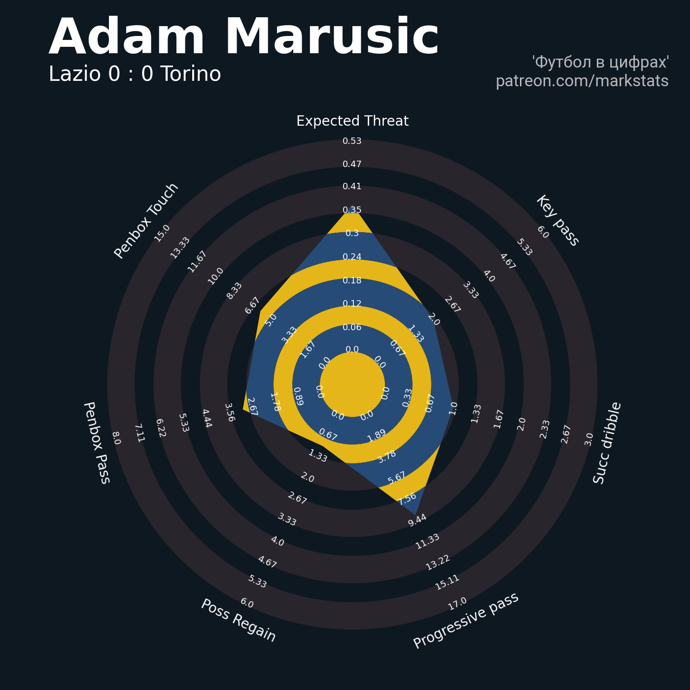 ▪ 0.53 очка xT (+0.13 со стандартов)