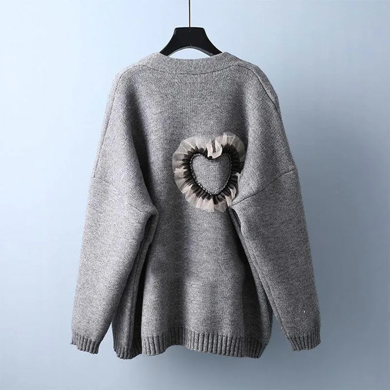 «Lazy Style Autumn 2021 New Lace Big Love Long-sleeved Sweater Cardigan Jacket Female Korean Version Loose Slim Knit Sweater» по лучшей цене на рынке! Всего за 19$ (1805рублей)