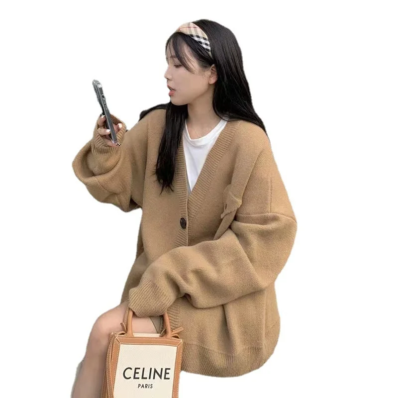 «Lazy Style Sweater Coat Autumn Winter 2022 New Design Sense Solid Color Loose V-neck Single Breasted Knitted Cardigan Women» по лучшей цене на рынке! Всего за 21$ (1995рублей)