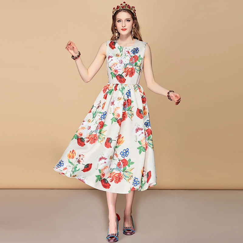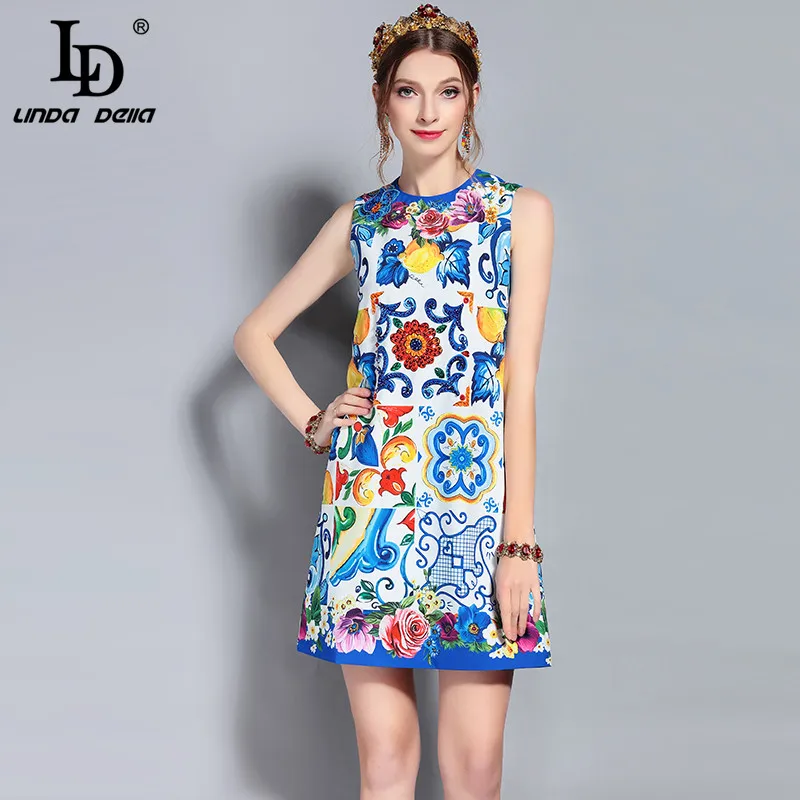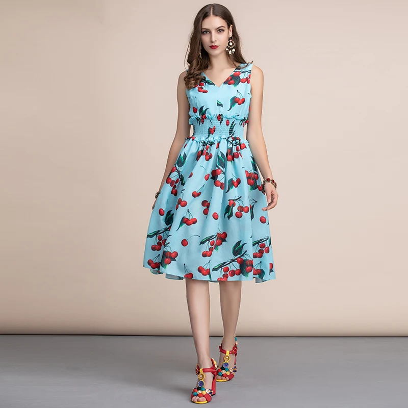 Sexy V-neck Sleeveless Summer Women's Summer Cotton Loose Party 3d Printed Dress Fruit Pattern Women's Dress