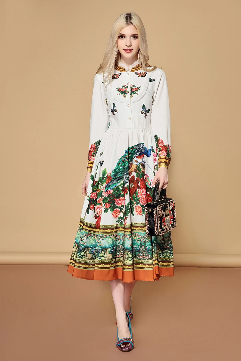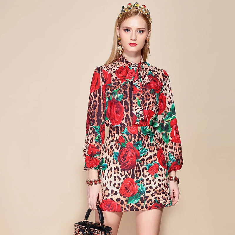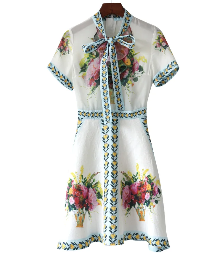 Women's Long Sleeve Floral Chiffon Dress With Lining Spring Autumn Bow Single Breasted Pleated Bottoming Dresses Female Vestidos