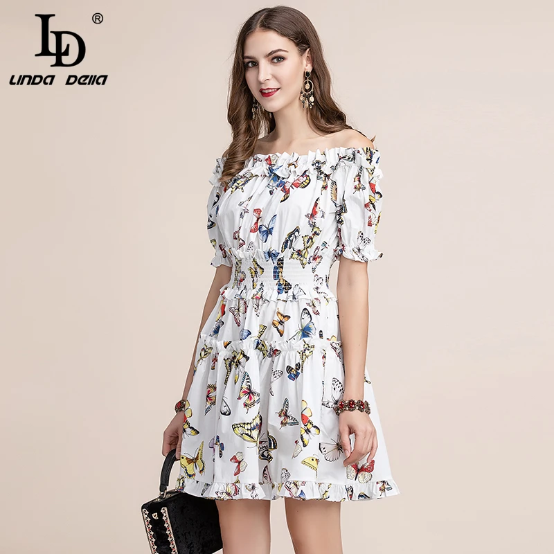 Women Sexy Off Shoulder Summer Ladies Dress Spring Short Sleeve Ruffle Party Dress Female Elegant Slim Waist Mini Dress Vestidos