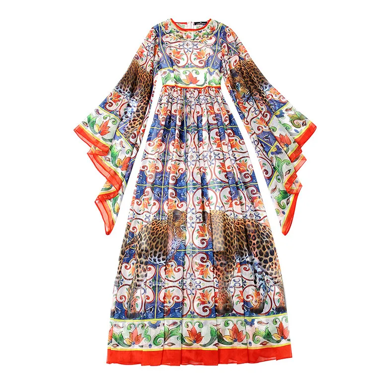 African Dresses for Women Fashion Floral Print Slash Neck Three Quarter Sleeve Maxi Dress High Waist Vintage Long Dress Autumn
