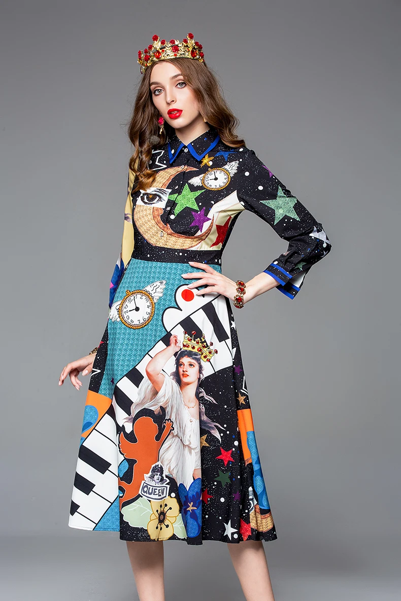 Fashion Letter Printed Shirt Dresses Women Autumn Long Sleeve V-neck Loose Package Hip Turn-down Collar Ladies Party Vestido