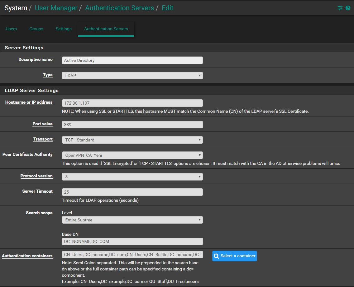 Ldap settings