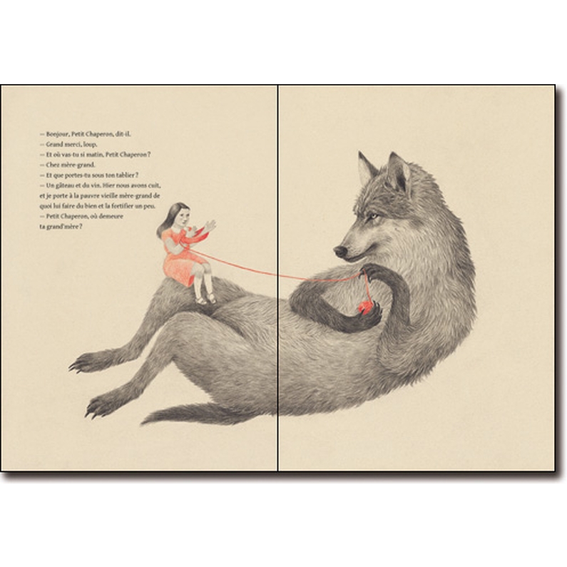 Voilà un Petit Chaperon Rouge qui n'admet dans ses illustrations que le rouge, le noir et le blanc, un Petit Chaperon Rouge qui n'admet pas de texte mais ménage dans ses illustrations tellement d'indices subtils - et de suspense - que l'enfant non lecteur peut y être autonome .
