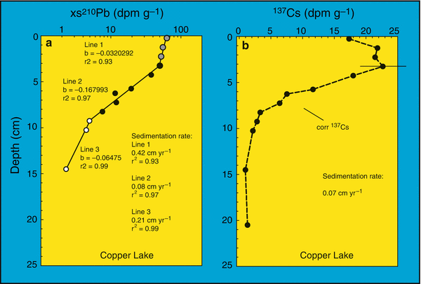 The 210 Pb sediment dating is the most widely used method to determine recent (~100-150 years) chronologies and sediment accumulation rates in aquatic environments and has been used effectively for reconstruction of diverse environmental processes associated with global change . Owing to the relative accessibility of the 210 Pb methodology, many . . .