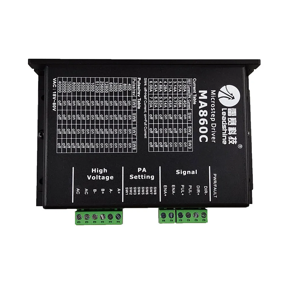 NifMyTFWcmДолго искали Leadshine 2-phase stepper driver MA860C input 36-80VAC 1.8-7.2A control NEMA34/23 stepper motor, но не могли найти? Предоставляем вашему вниманию Leadshine 2-phase stepper driver MA860C input 36-80VAC 1.8-7.2A control NEMA34/23 stepper motor по лучшей цене на рынке!