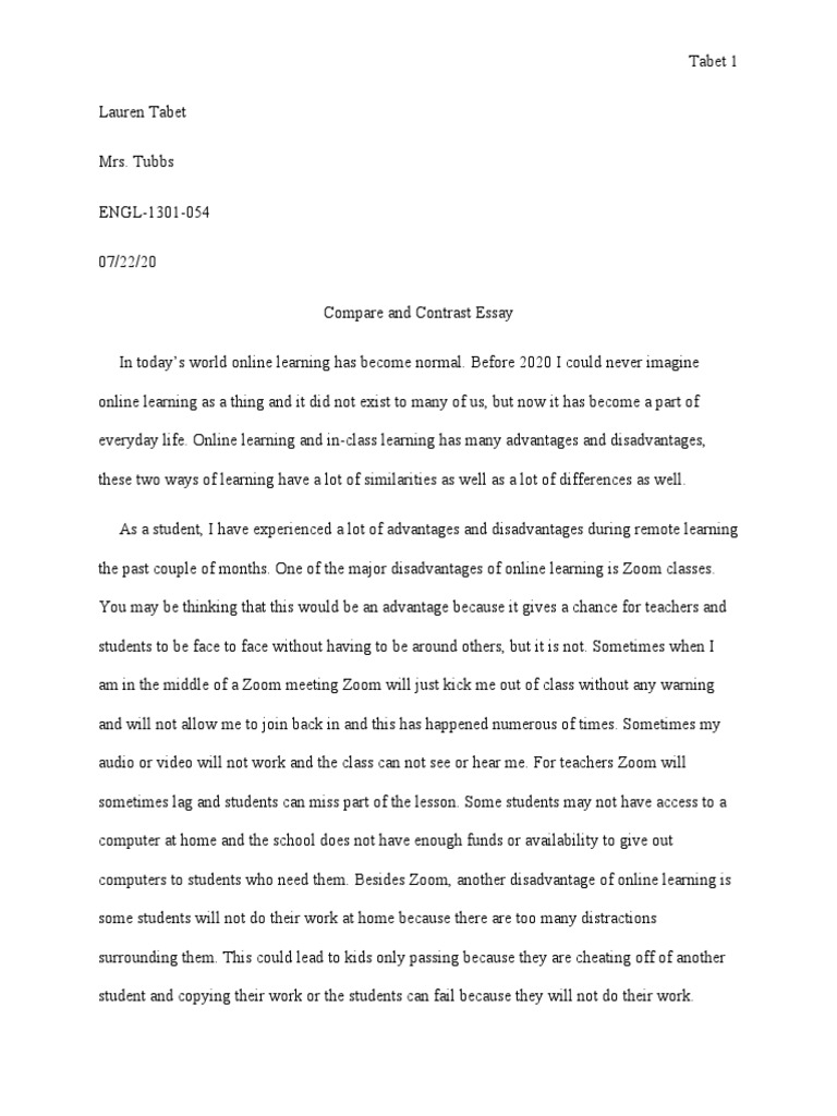 Sample Compare And Contrast Essay