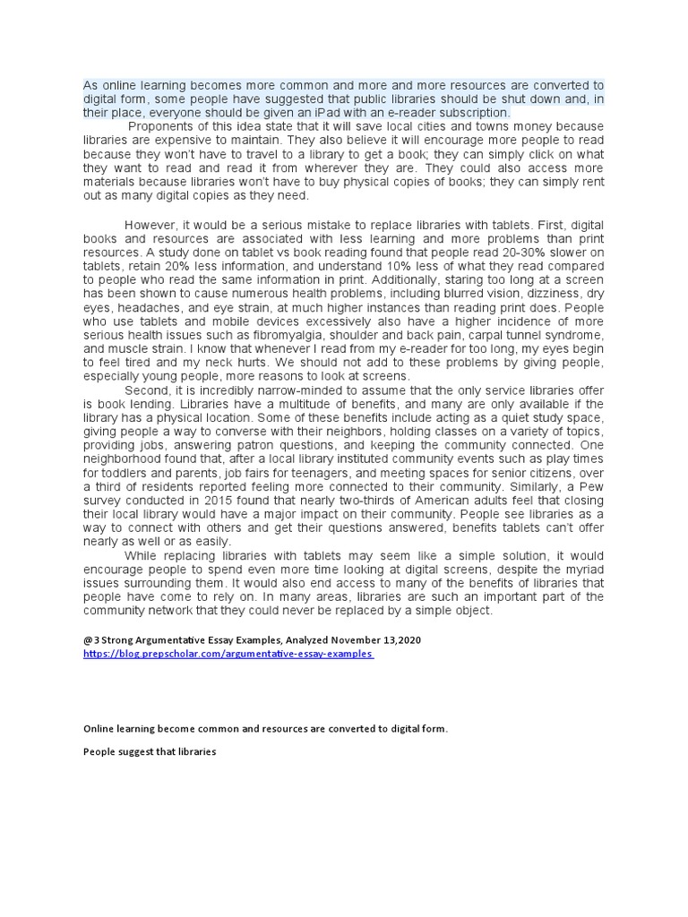 Argumentative Essay: Online Learning and Educational Access