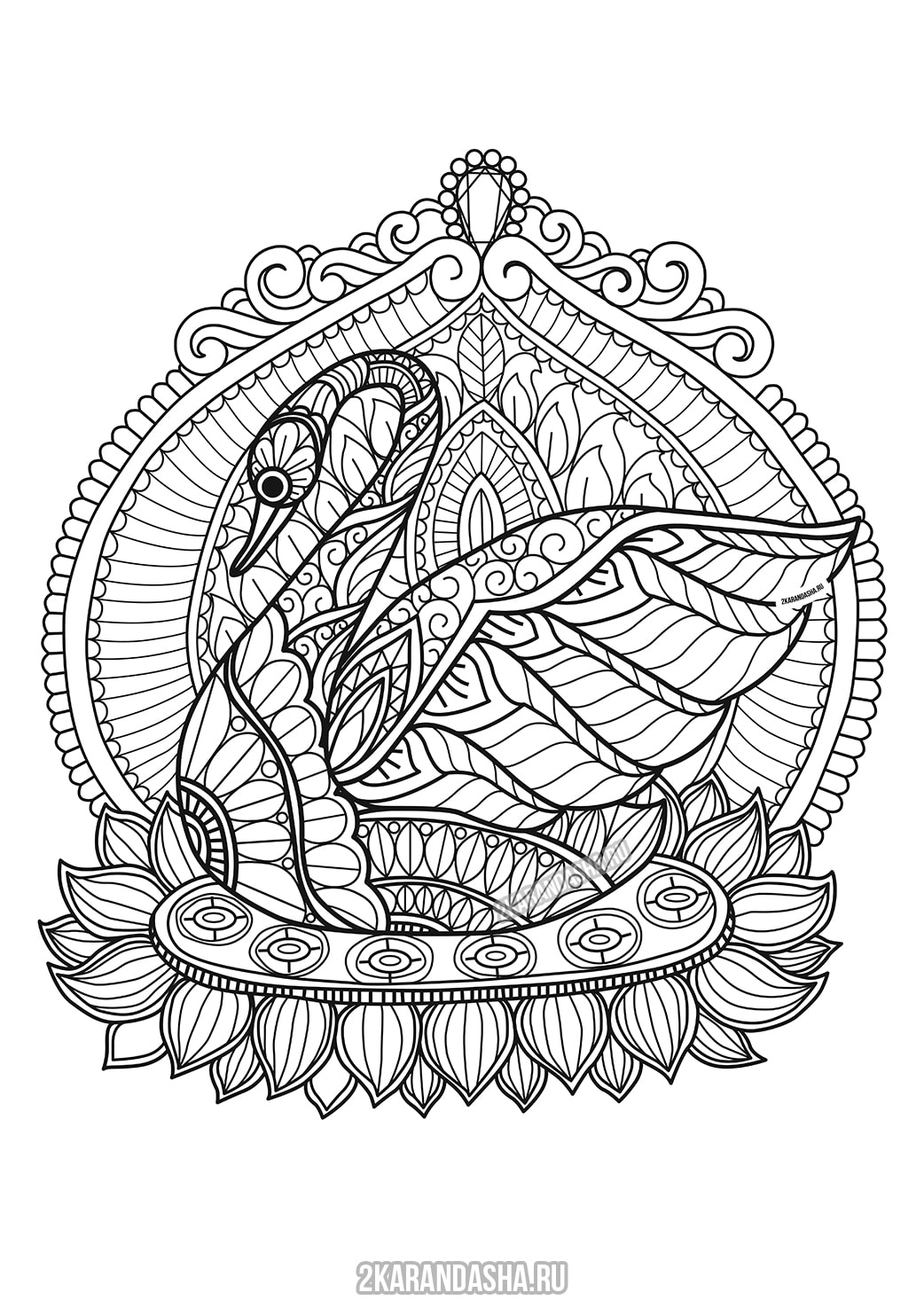Раскраска Лебедь - распечатать в формате А4