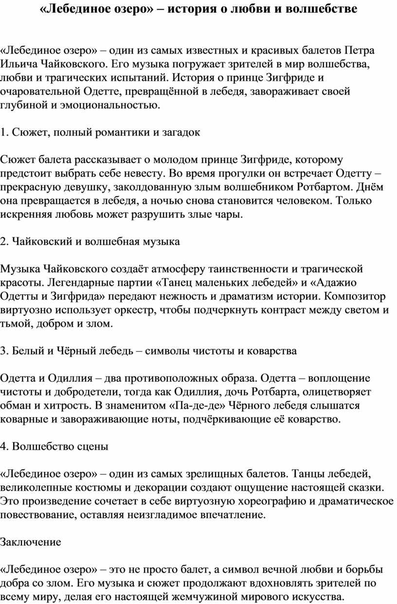 Лебединое озеро пересказ
