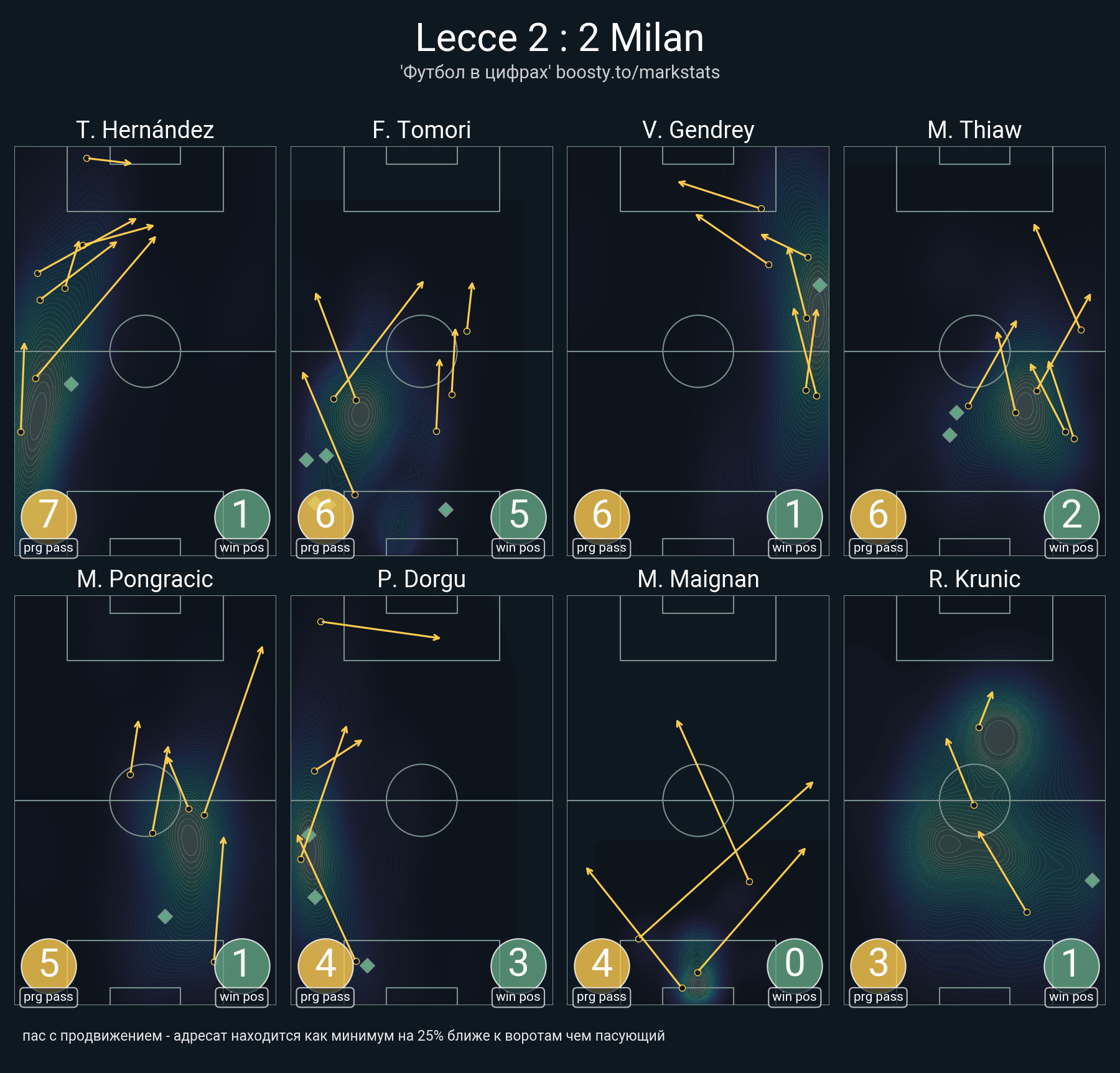 22 успешных передач из 28 попыток (1 ассист, 1 под удар, 3 с продвижением, 6 на трети соперника)
