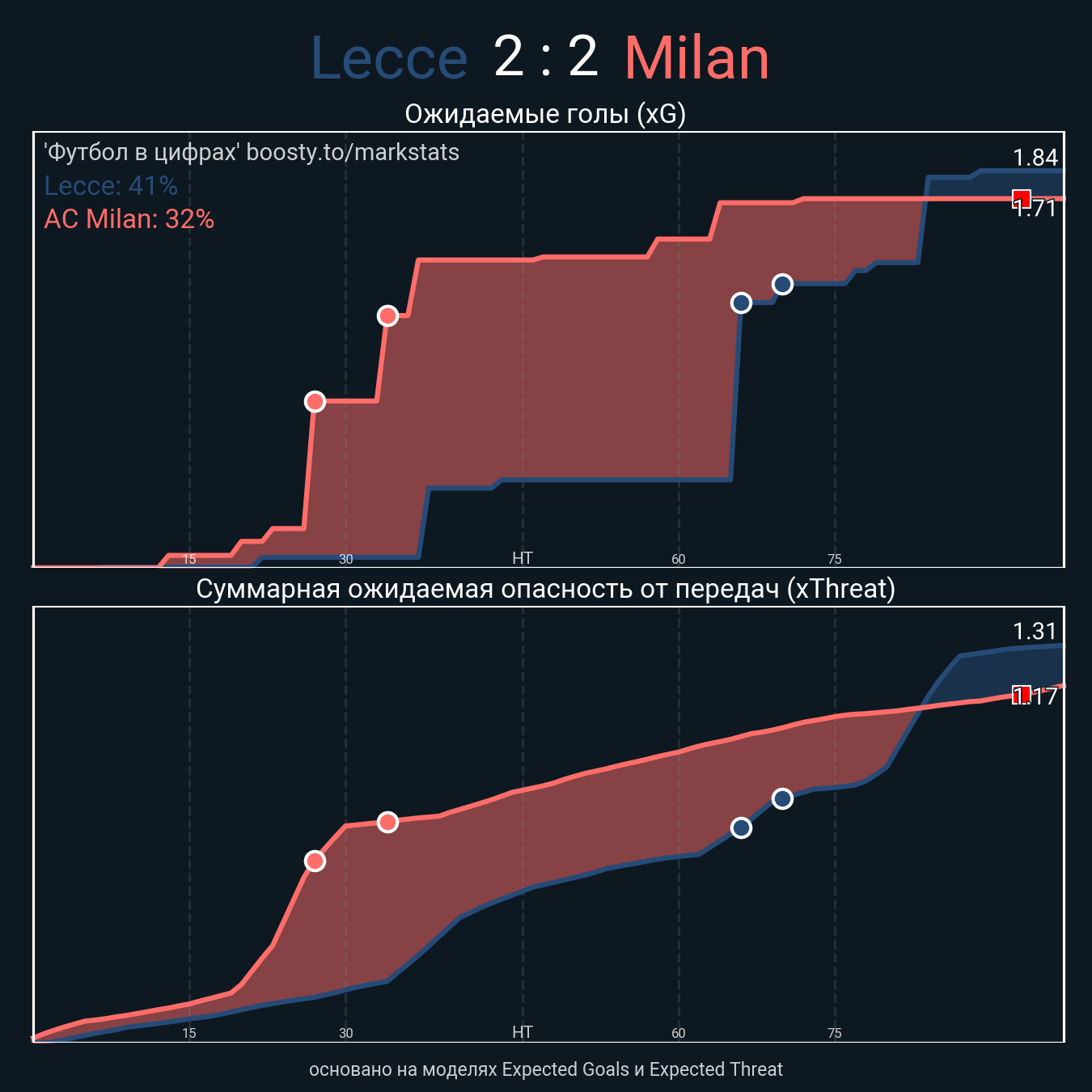 Ожидаемые голы (NPxG): 1.84 - 1.71