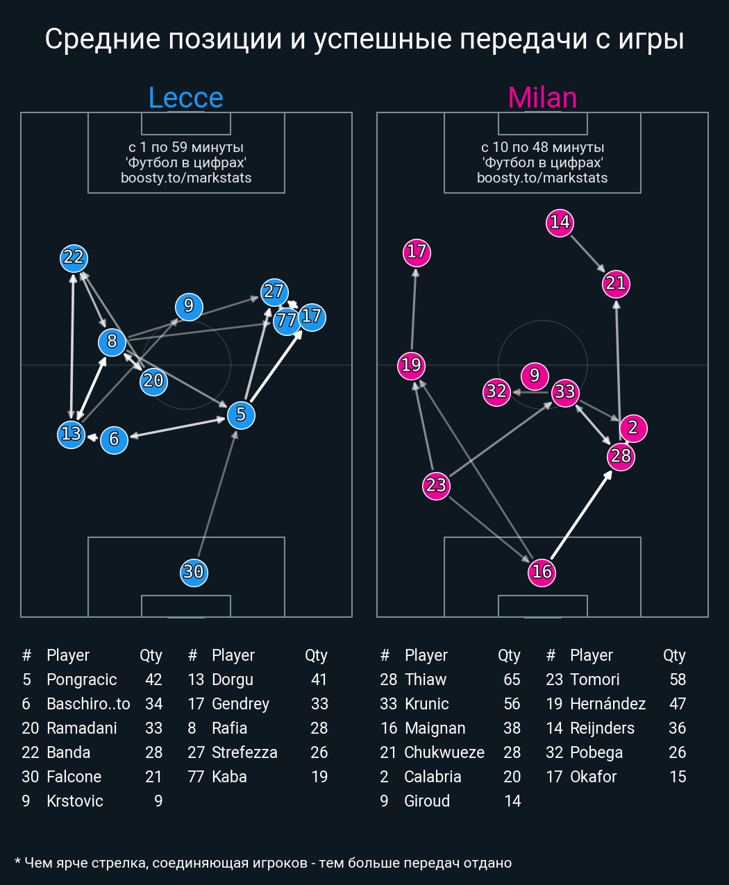39 успешных передач из 48 попыток (1 под удар, 6 с продвижением, 11 на трети соперника)