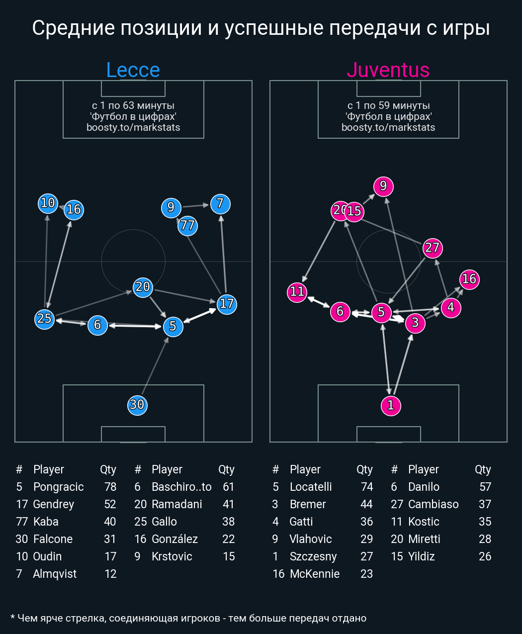 20 успешных передач из 26 попыток (4 с продвижением, 7 на трети соперника)