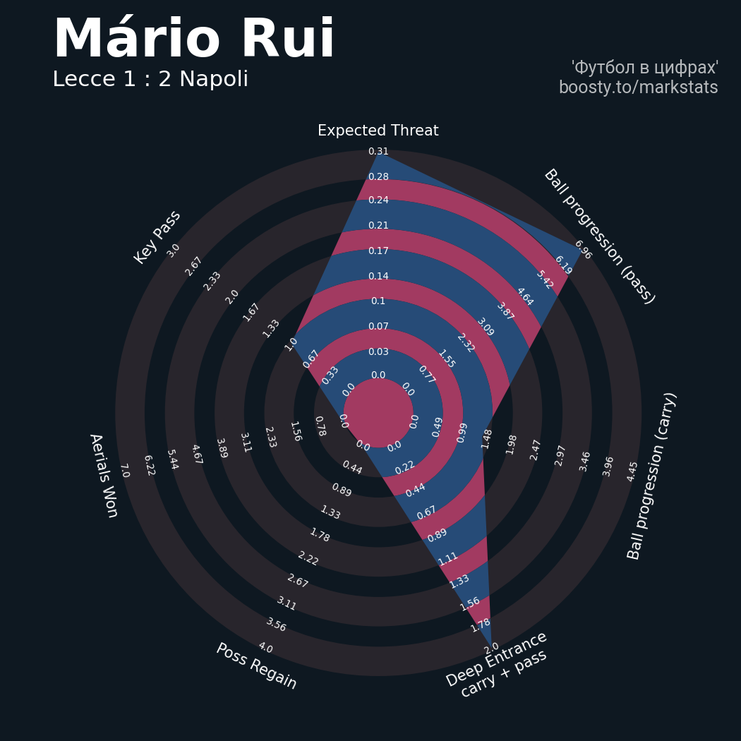 31 успешных передач из 38 попыток (2 под удар, 1 с продвижением, 7 на трети соперника)