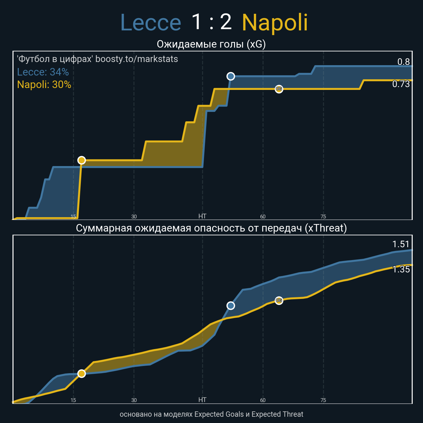 Ожидаемые голы (NPxG): 0.8 - 0.73