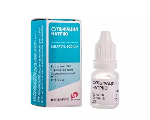 Капли для глаз Сульфацил натрия являются водным раствором сульфацетамида . Активне вещество может быть в двух концентрациях: 0,2г в 1 мл при 20% концентрации препарата или 0,3 г в 1 мл при 30% концентрации лекарства . Помимо активного вещества в растворе присутствуют тиосульфат натрия, хлористоводородная кислота, вода для инъекций .