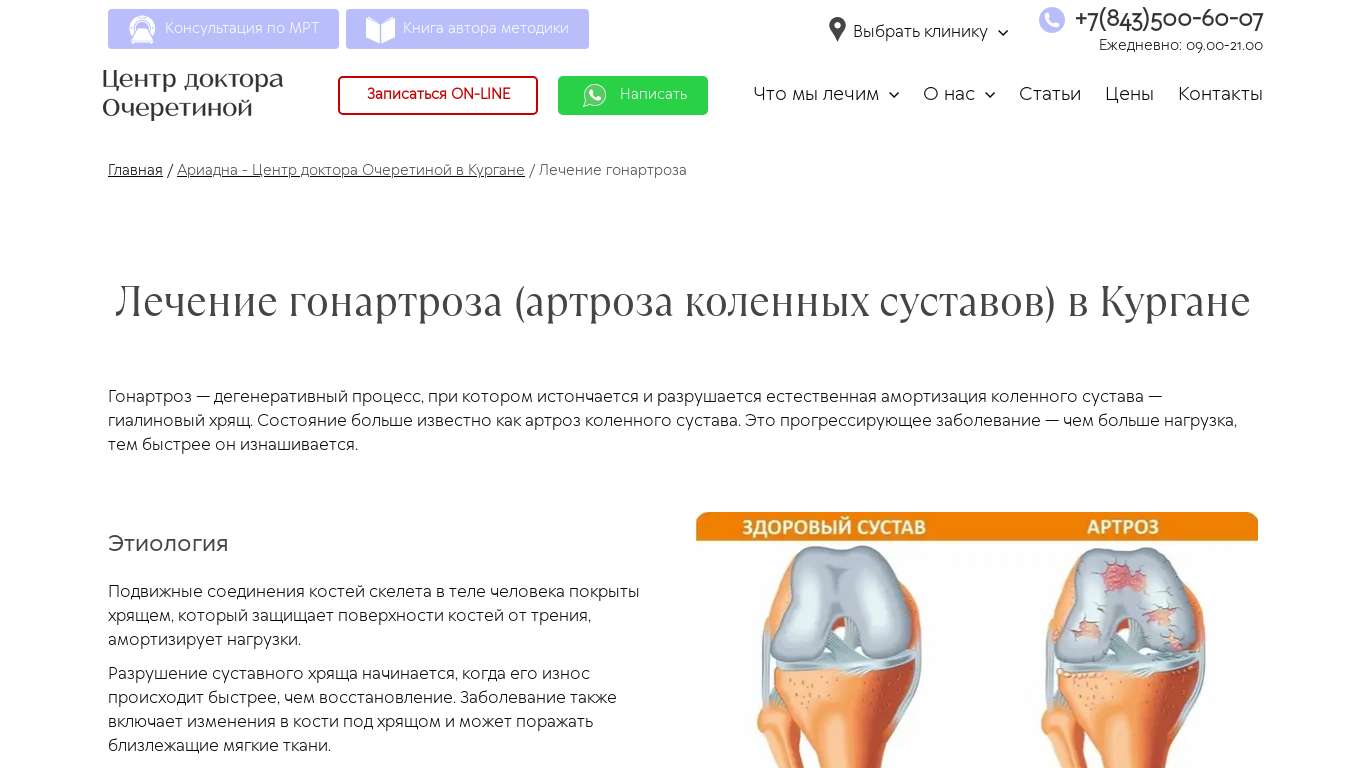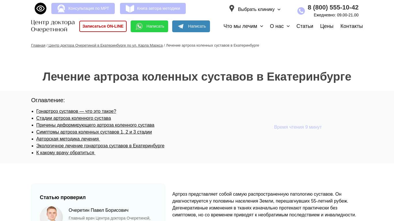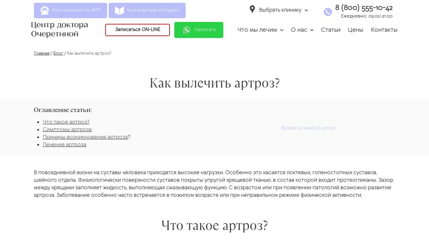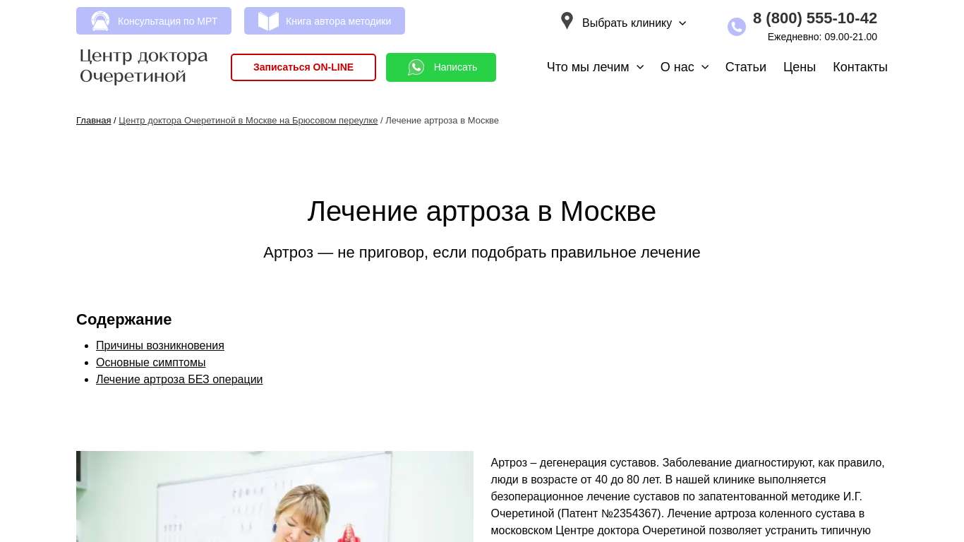 Лечение артроза в спб