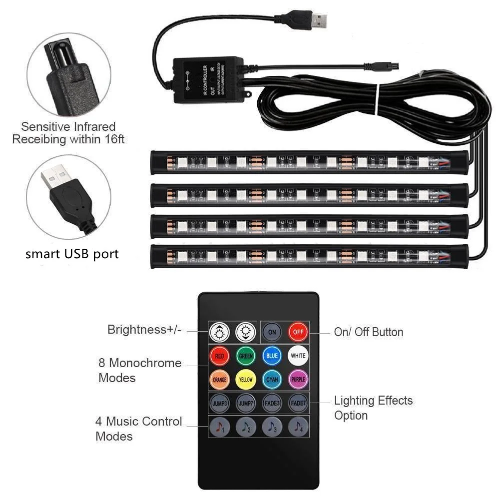 Led Car Foot Ambient Light With USB Cigarette Lighter Backlight Music Control App RGB Auto Interior Decorative Atmosphere Lights - Купить с бесплатной доставкой