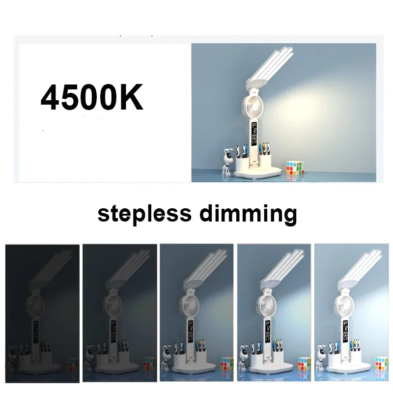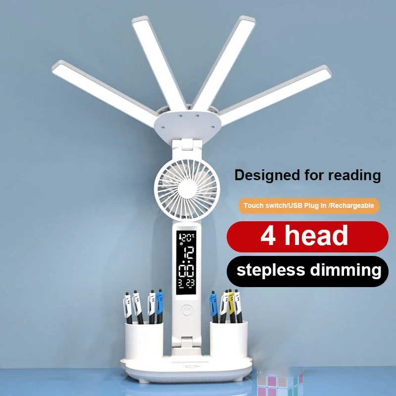 QphIjiRjNGHere you can buy Led Eye Protection Desk Lamp Time Temperature Display Desk Lamp Folding 4-head with Fan for Learning Student Dormitory Reading with free delivery to your post office.