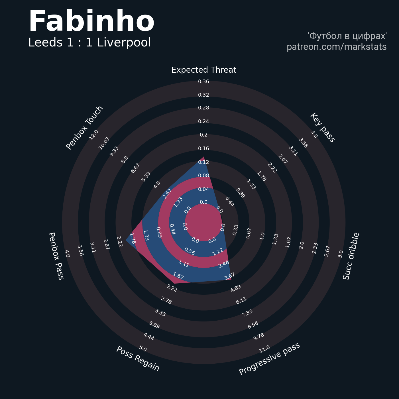 ▪ 0.36 очка xT (+0.02 со стандартов)