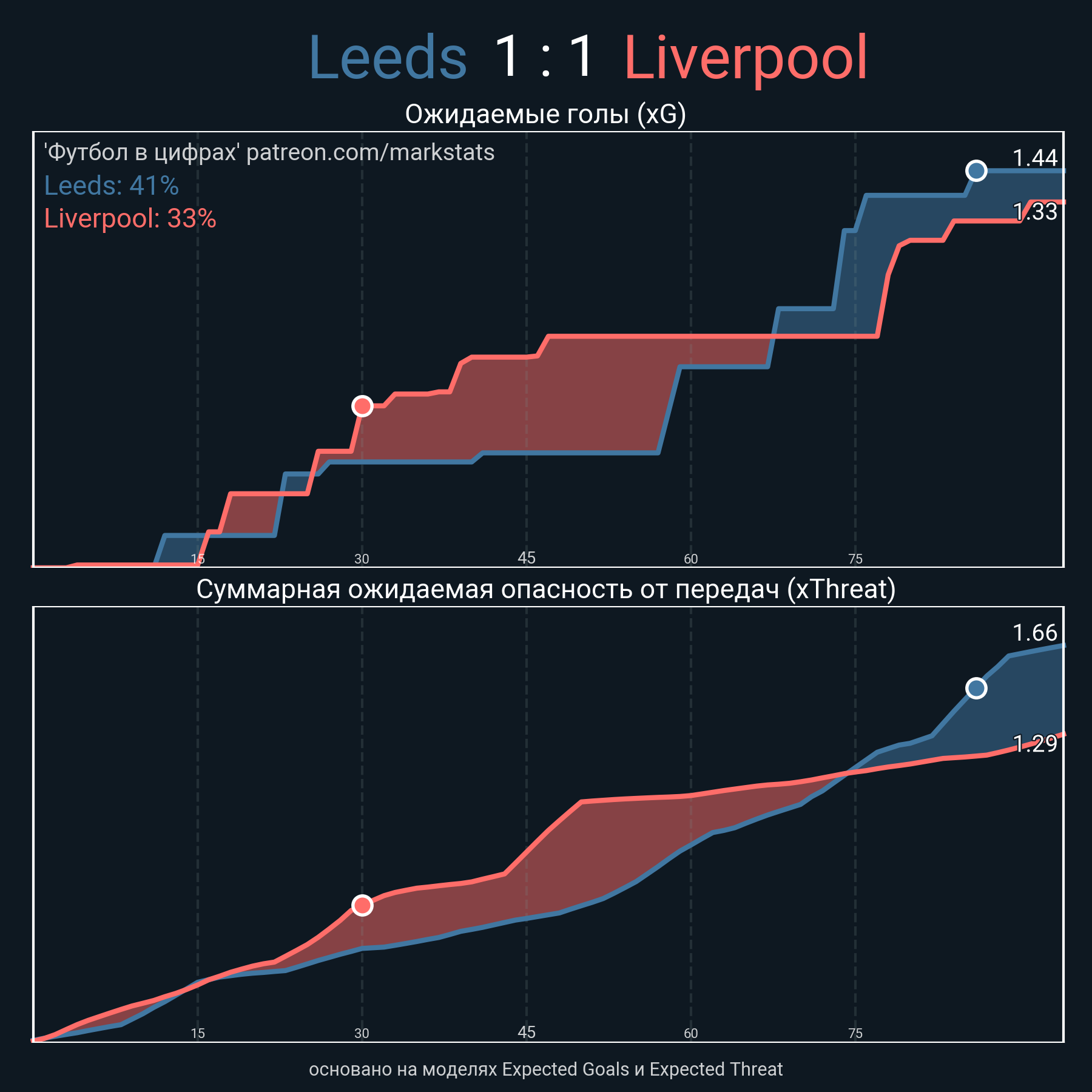 Футбол в цифрахСтатистика матча Leeds - Liverpool