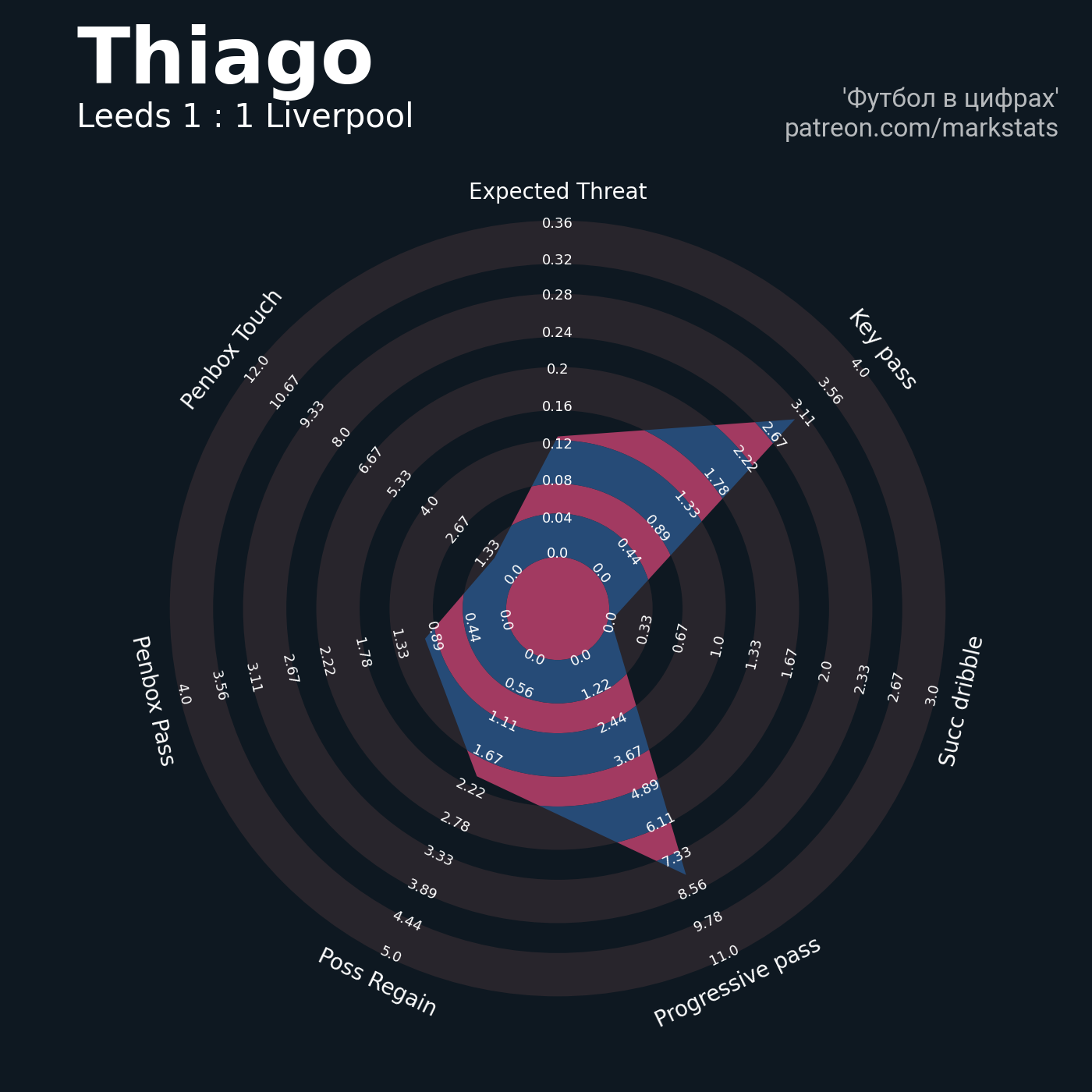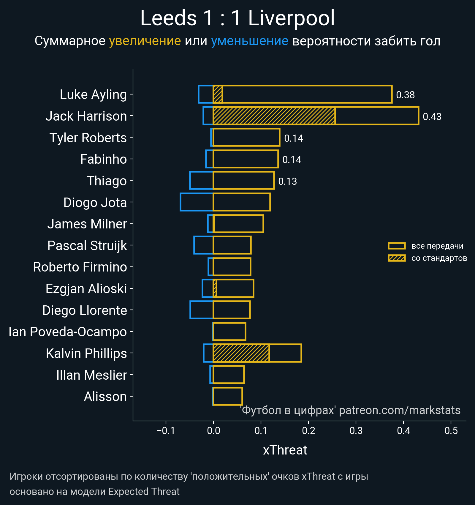 ▪ xThreat без учета угловых: 1.26 - 0.84