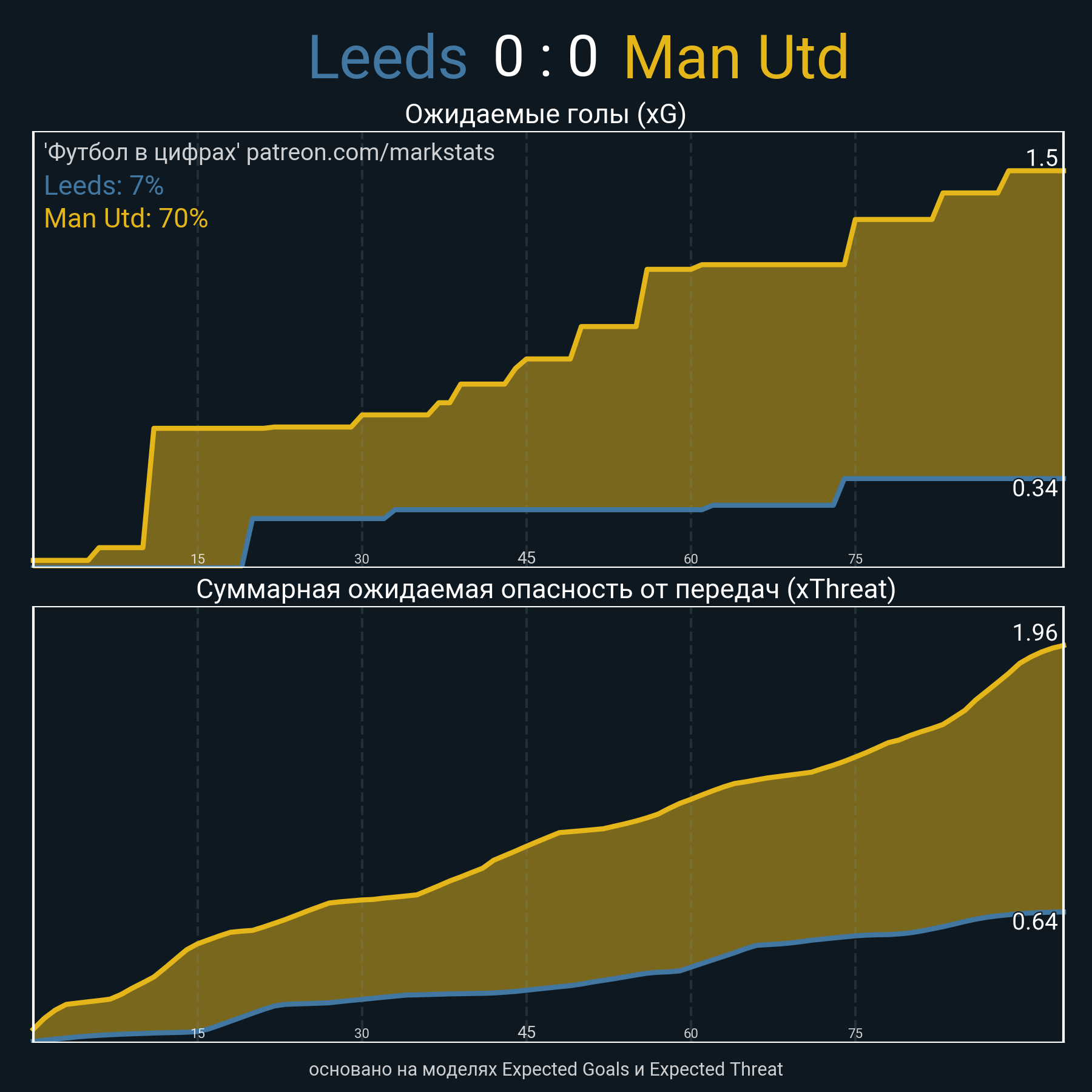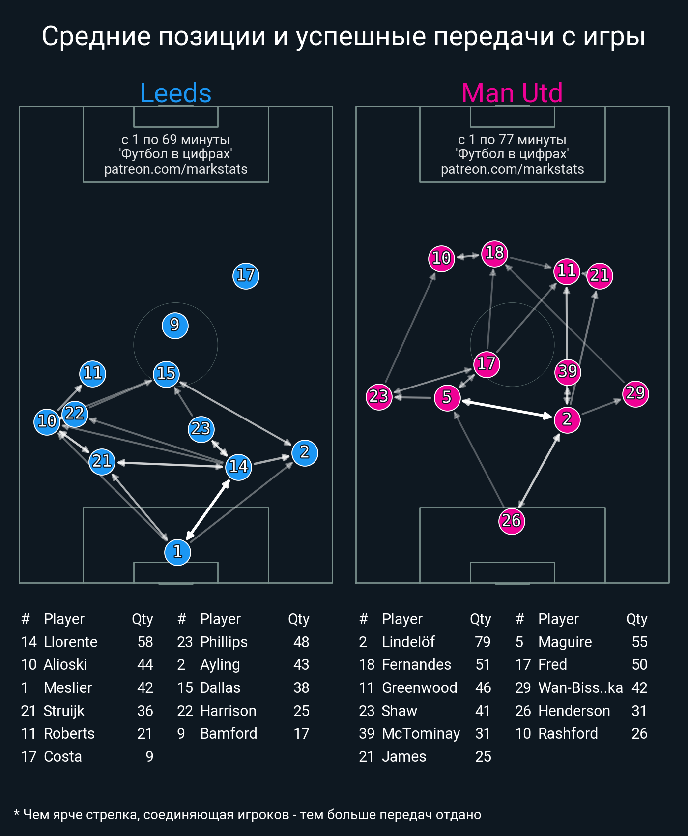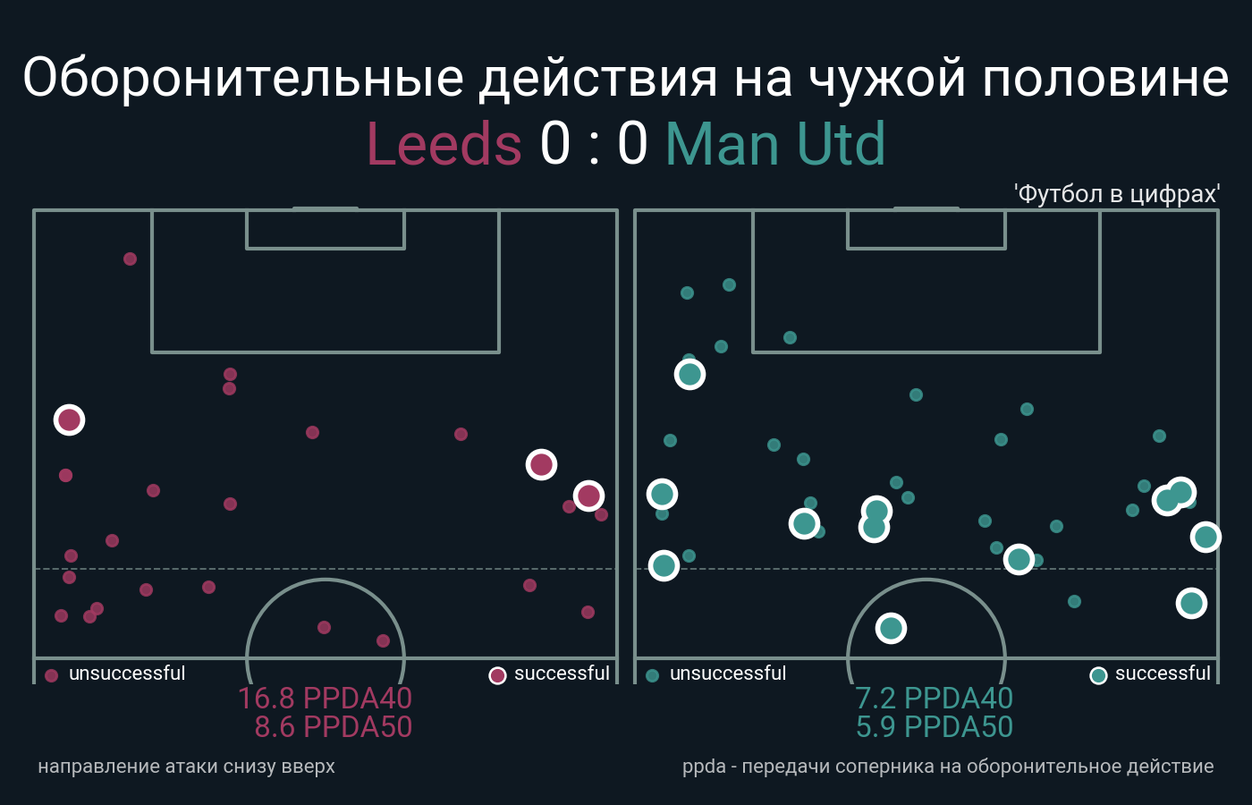 Футбол в цифрахСтатистика матча Leeds - Man Utd