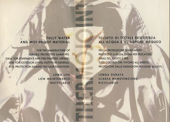 Thermojoint не только был полностью водонепроницаемым, но и гарантировал защиту от ядерного излучения. Внешне куртки Left Hand выглядели довольно просто, но при ближайшем рассмотрении было видно множество мелких деталей и функциональных элементов: карманы для мобильных телефонов, регуляторы на липучках, складные капюшоны.