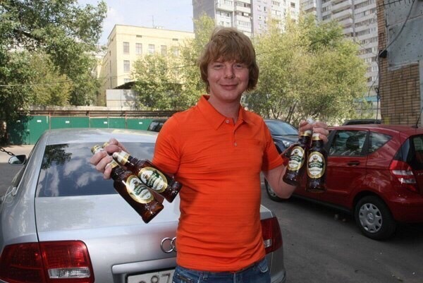 Но Андрей Григорьев-Апполонов на этой фотографии, сказал: «Пакет не надо», и он несет эти четыре пива в руках.
