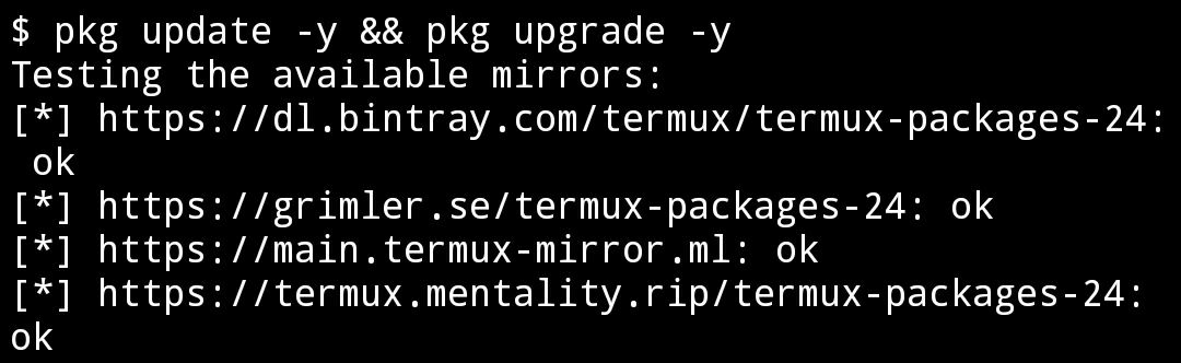 pkg update -y && pkg upgrade -y