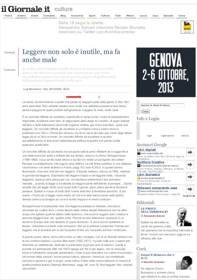 PDF Lettura Perché leggere, se leggere fa male?