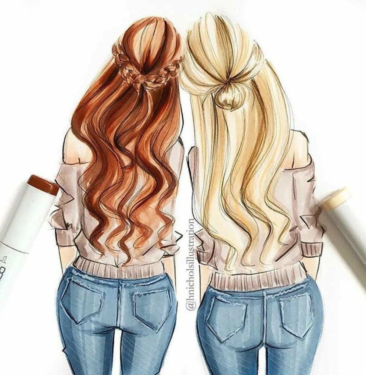Фото «лучшие подруги», которые можно найти в интернете, станут хорошей основой . Это упростит процесс рисования для человека, незнакомого с аниме стилем или новичка в рисовании .