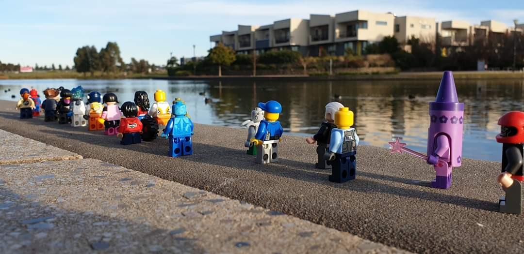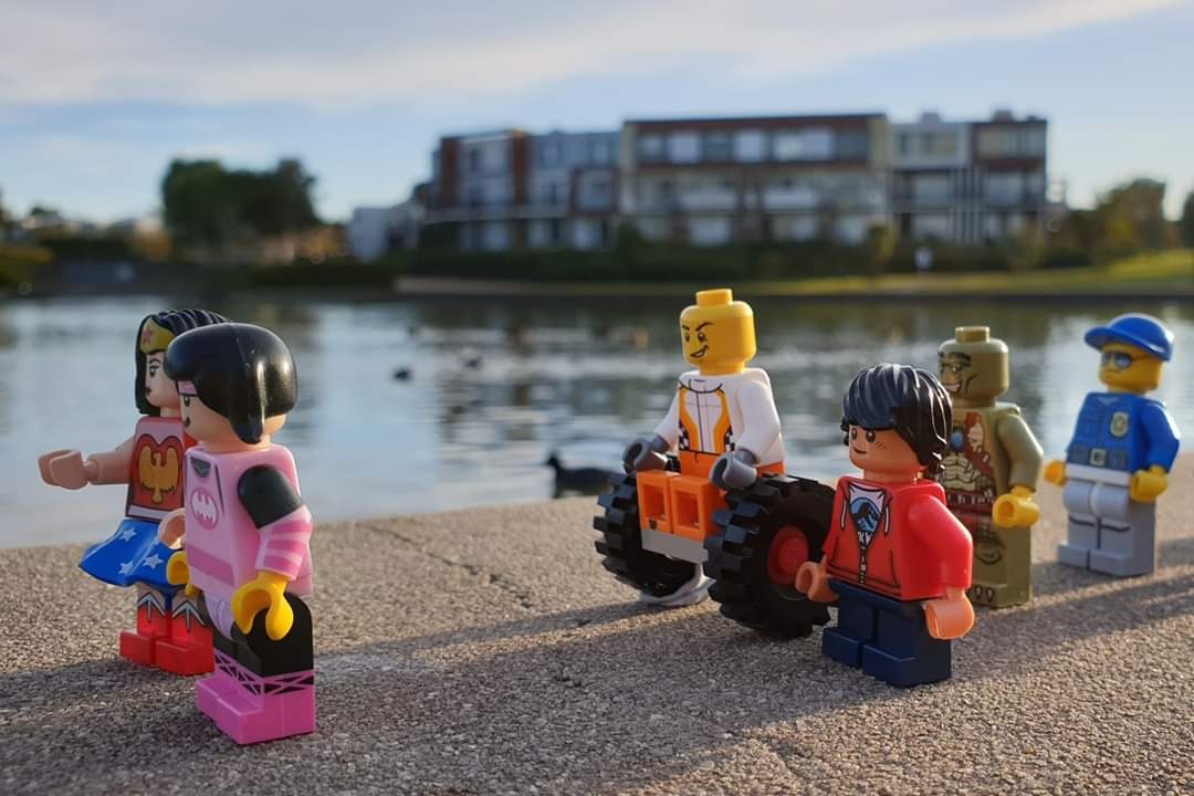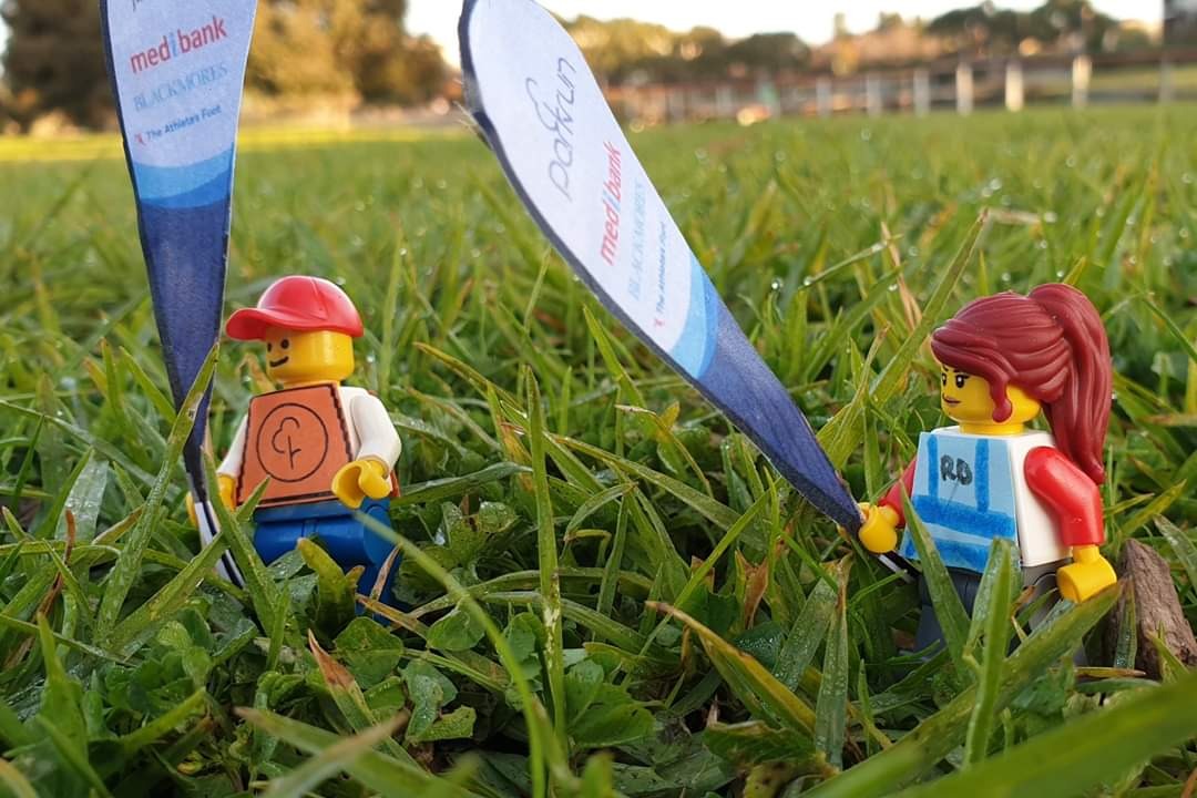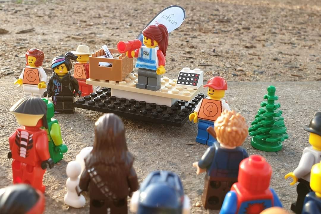 Волонтеры несут флаги. Кстати, на Highlands parkrun их действительно несколько. Флагами отмечены не только старт и финиш, но и ключевые повороты.Трассу тщательно готовят не только ставя конусы, а еще и убирая после нерадивых посетителей парка.Ну а для участников любой parkrun начинается с брифинга! Рупор, токены, манишки - все на месте!На этом плане можно увидеть ноутбук для выгрузки результатов сразу после финиша.Три.. два.. один! Старт!Фотограф на трассе тоже имеется. Куда же без красивых фото?!)Как, например, эта! Кстати, это минифигурка персонажа "Lego Movie" - Люси. Так что можно считать parkrun посетила Lego селебрити.Но, не всем участникам просто. Главное не забывать, что parkrun - это для удовольствия!Для удовольствия и для всех! Мини фигурке в инвалидном кресле тоже нашлось место среди участников!Ребята из Австралии говорят, что для Lego паркрана всплыли неожиданные риски - утки, которых в парке весьма много. "Участников" приходилось в буквальном смысле отбивать!Впрочем, Lego parkrun больше ничем не отличался от настоящего. После финиша традиционное сканирование. Вы ведь не забыли за это время, что без штрихкода - нет результата?!)Традиционное фото в рамке!И напоследок, фотография волонтеров!Вот таким получился этот импровизированный Lego Highlands parkrun.