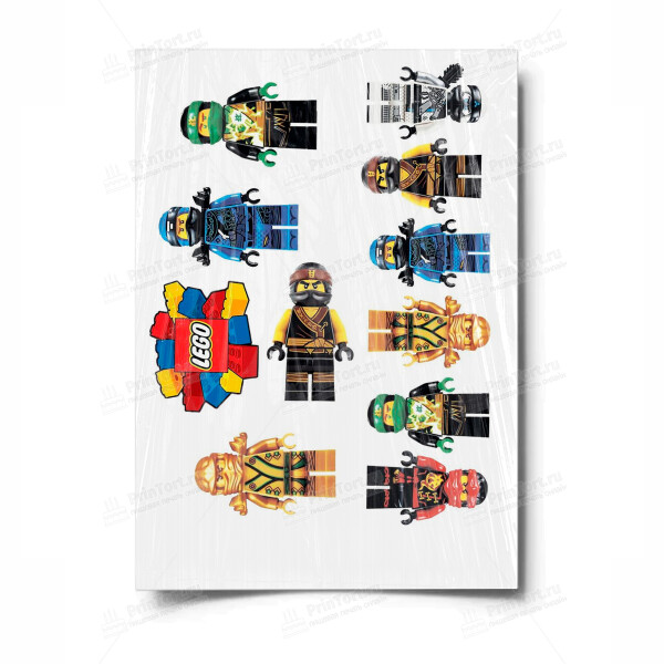 Картинка для торта «Лего Ниндзяго» . Герои Лего ниндзяго высотой 8-9 см . Большой выбор вафельных и сахарных картинок на торт . Самовывоз - метро Перово . Курьерская доставка по Москве и бережная отправка почтой России .