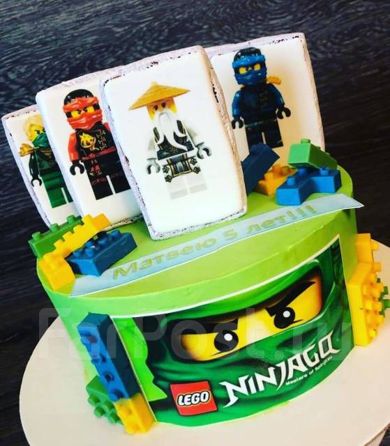 Купить прямоугольную картинку для торта «Лего ниндзяго» . Размер листа: формат А4 (макс . 20х28 см) Пищевая печать на торте, сахарной, вафельной, шокотрансферной бумаге . Доставка по Москве и по всей России .