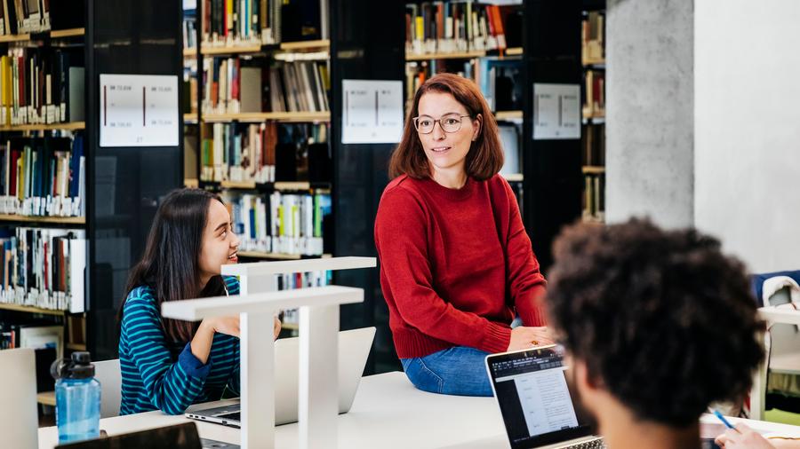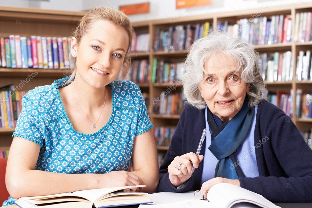 Lehrerin in Bibliothek