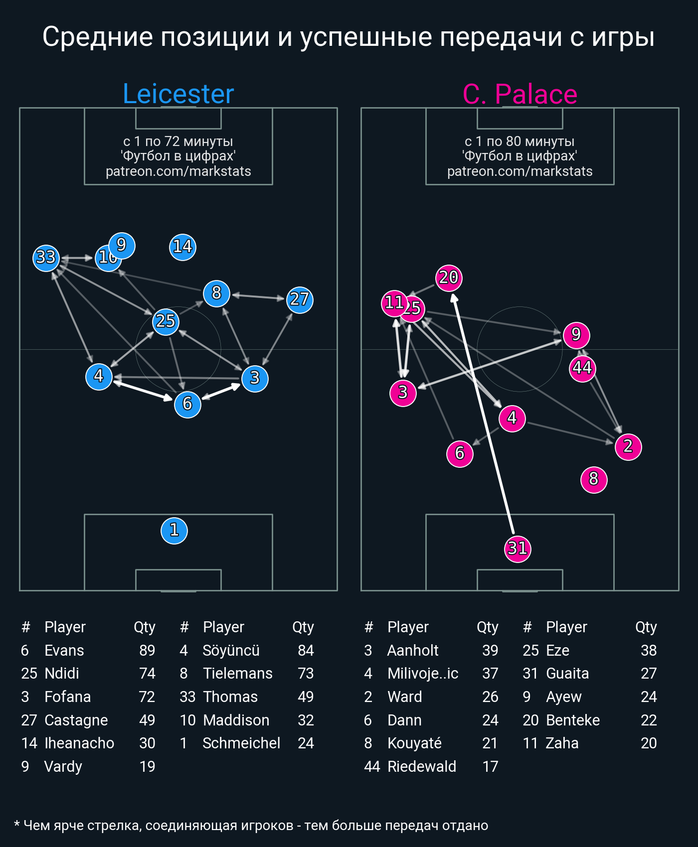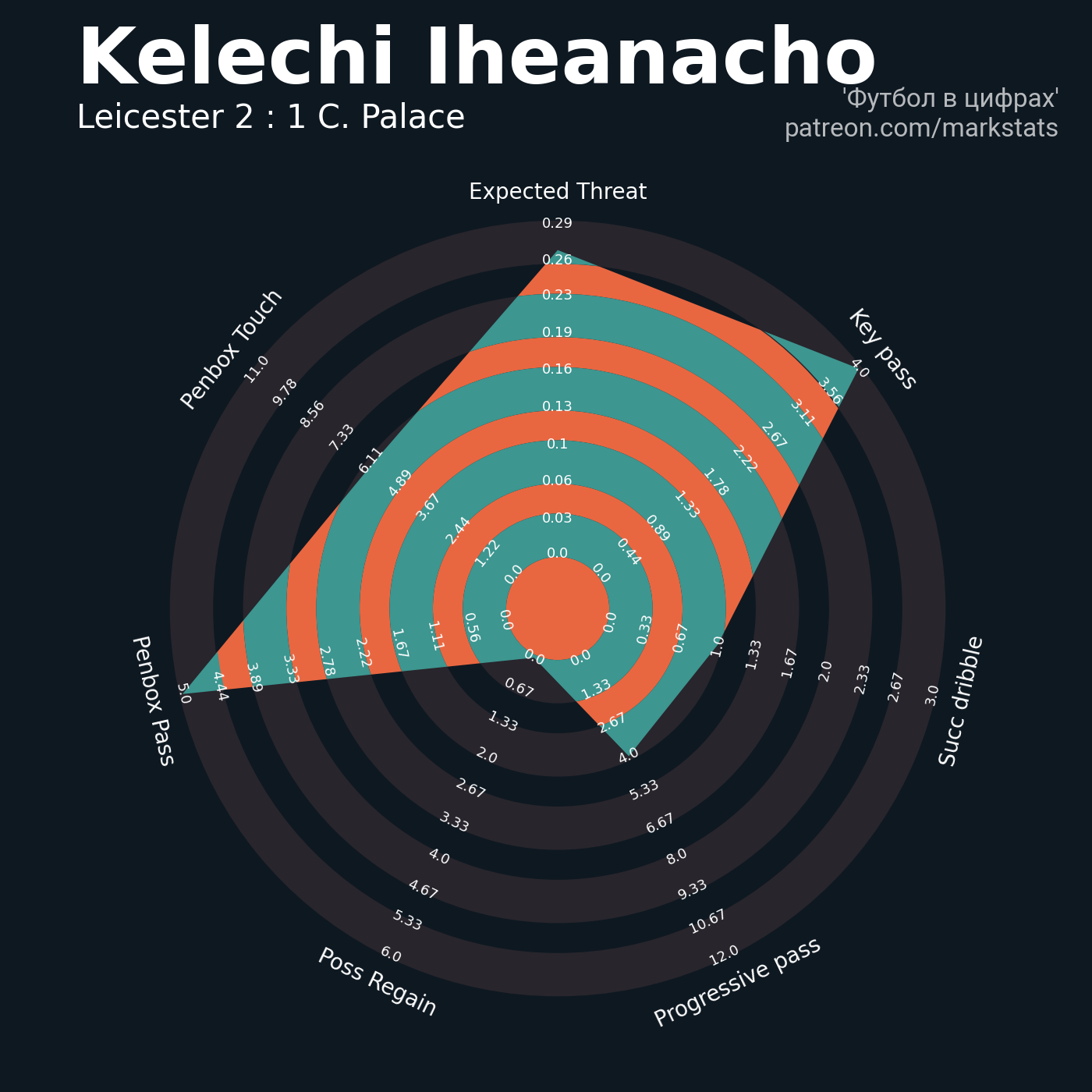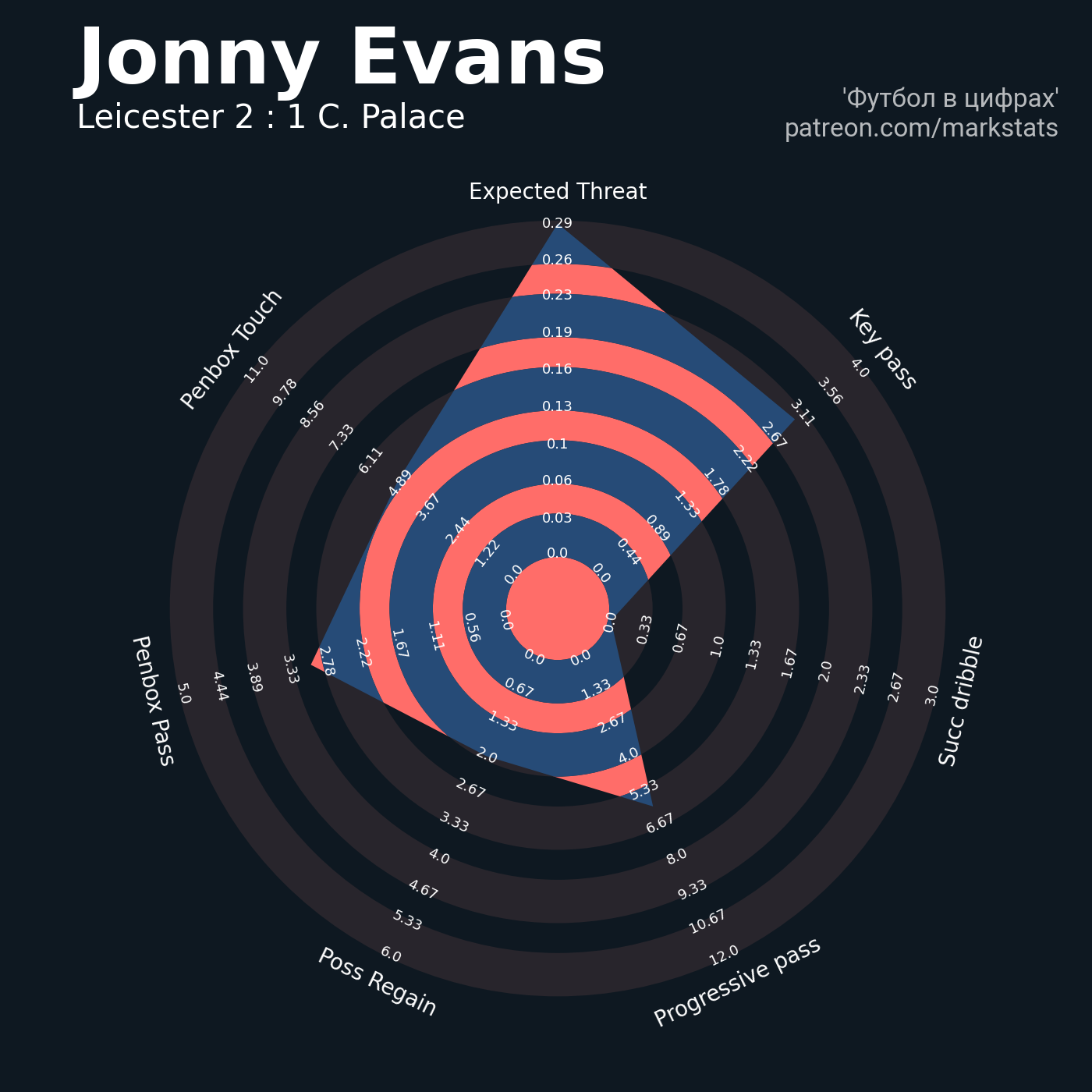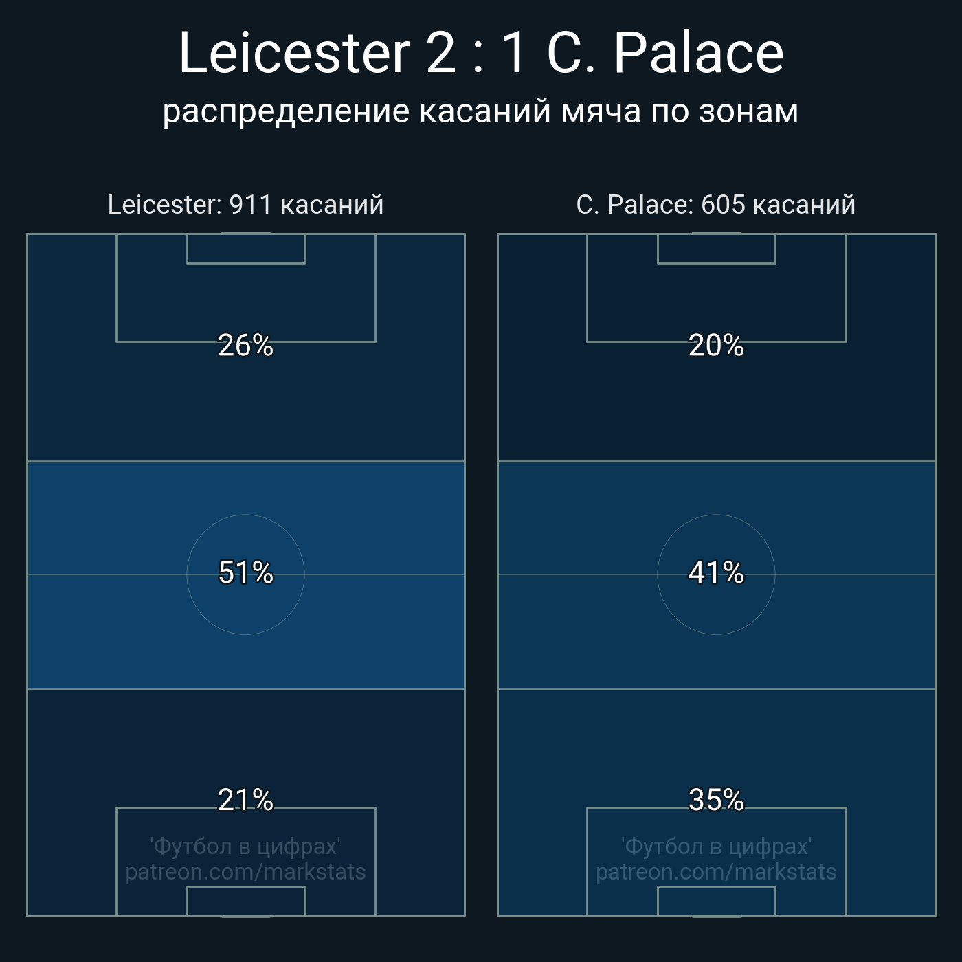 Футбол в цифрахСтатистика матча Leicester - Crystal Palace