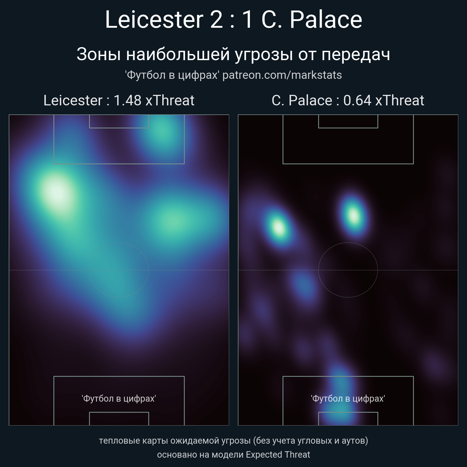 ▪ xThreat без учета угловых: 1.48 - 0.64