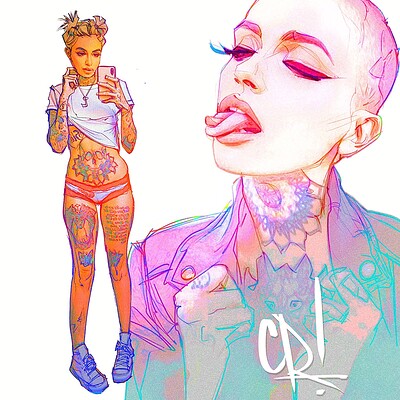 Stylish funky gal dances nude