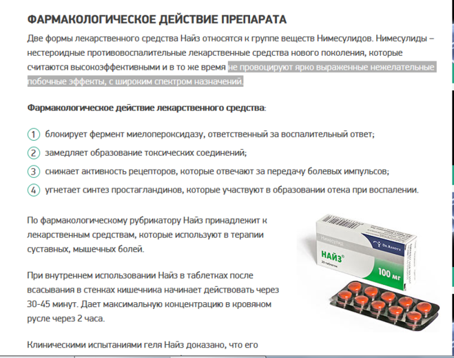 Лекарство найз таблетки