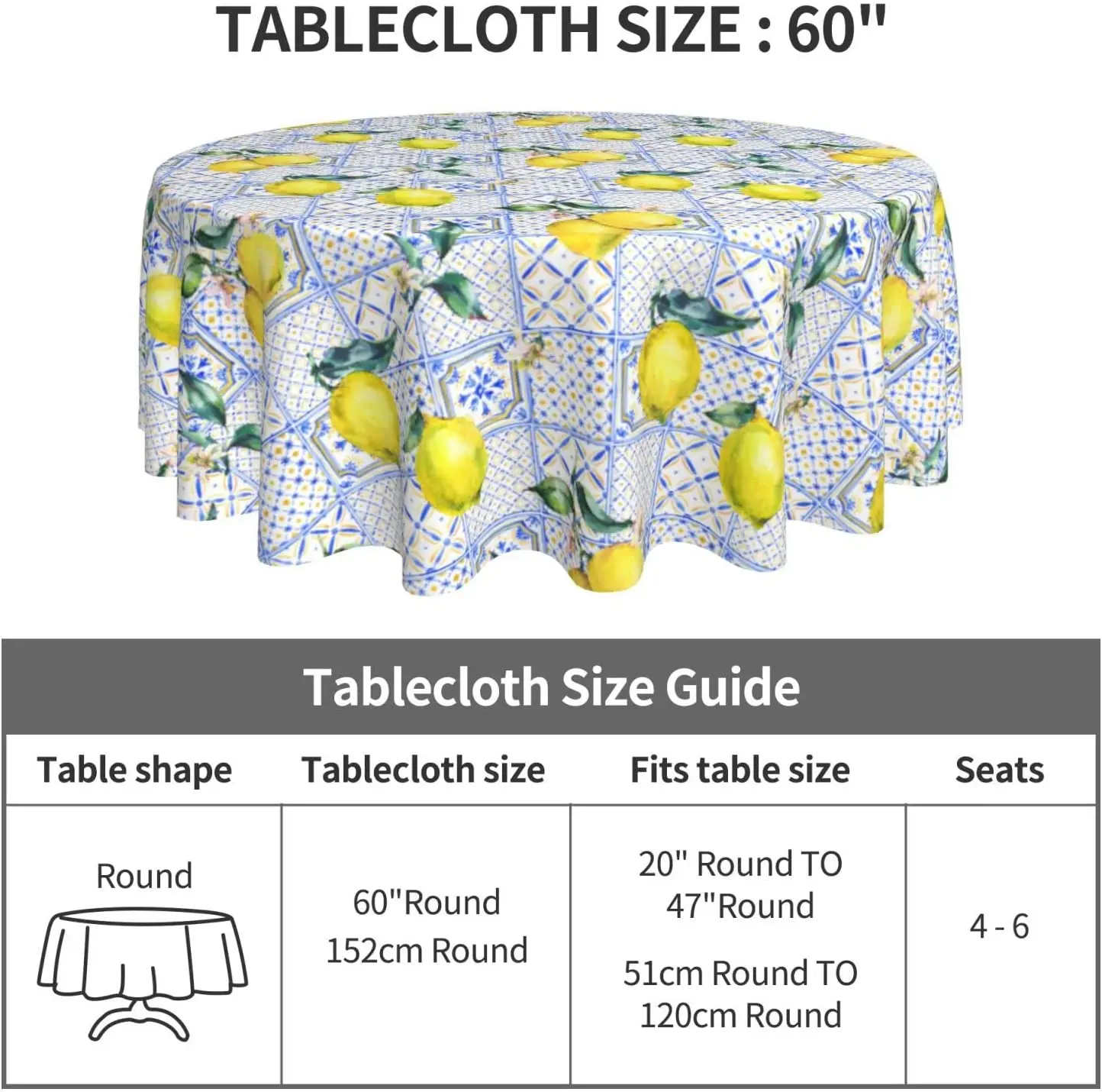 «Lemon Tablecloth Round 60 Inch Blue Floral Teal Table Cloth for Party Boho Farmhouse Picnic Table Cover for Indoor and Outdoor» по лучшей цене на рынке! Всего за 8$ (760рублей)