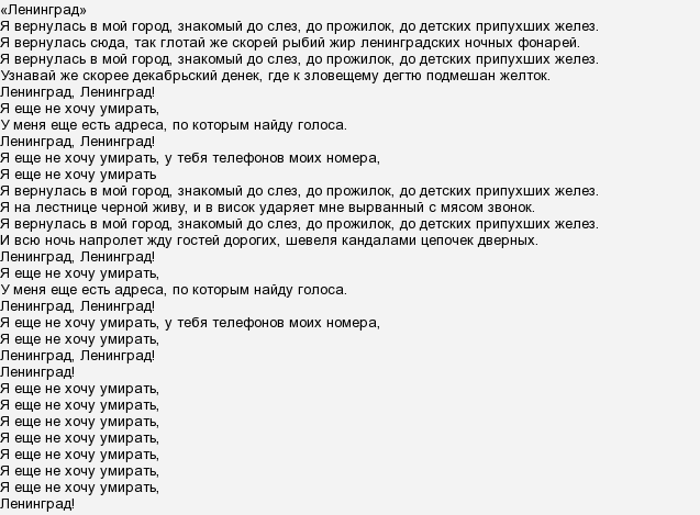 Ленинград гамаюн текст