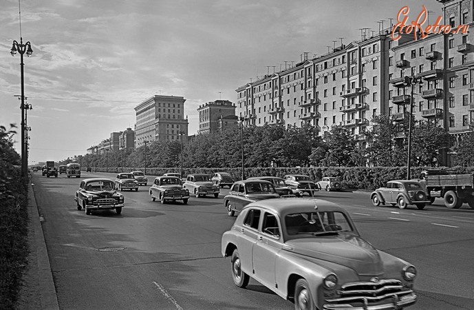 Ленинградский проспект связывает центр города с жилыми районами, местами отдыха . На проспекте размещены жилые дома, учебные и Фото 1957 г .: За площадью Белорусского вокзала начинается Ленинградский проспект . В довоенные годы на некоторых участках . . .