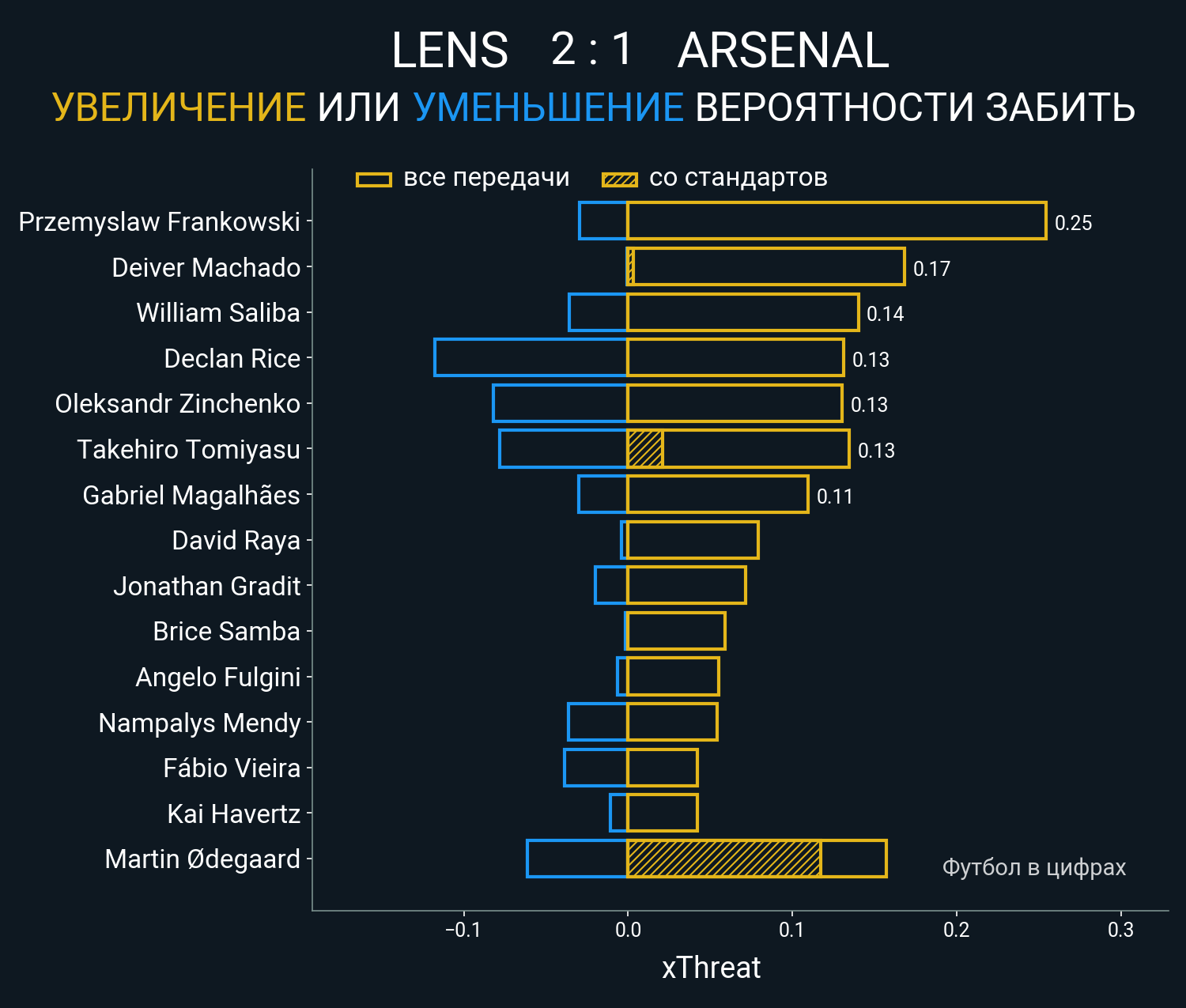 0.13 очка xT (+0.0 со стандартов)